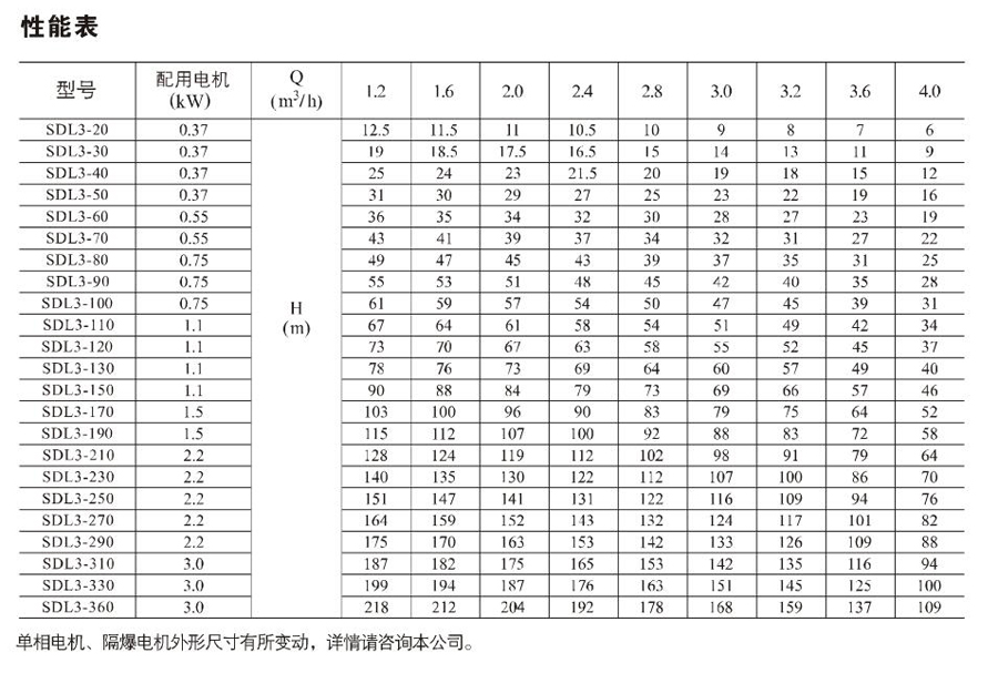 南元SDL3/SDLT3立式多級離心泵有不同的泵規格和不同級數,以滿足所需的流量和壓力。